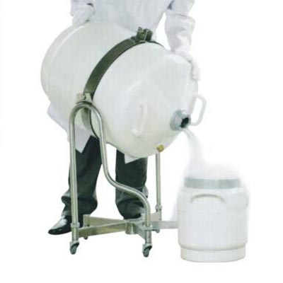 該產品采用全不銹鋼制造,便于用戶在室內方便轉運液氮罐,解決了大容積液氮罐轉運困難的問題,同時可以方便地將其手推把拆換成翻轉架部件,達到輔助人工傾倒容器中液氮的目的。具有轉運和傾倒液氮罐安全可靠、節省體力的優點。